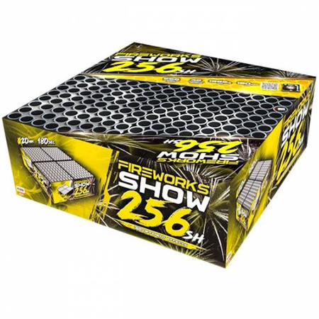 • Pokaz pirotechniczny 256 strzałów. Kaliber 20mm. Czas 180 sec. Dolot 30m. Posiada Certyfikat CE F2