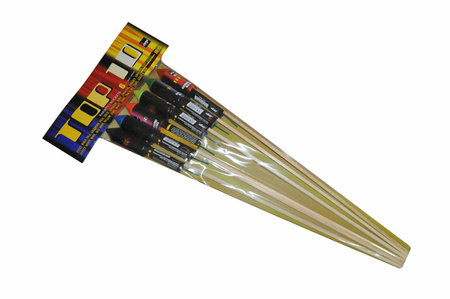 - Zestaw średnich rakiet, każda inny efekt. Cena za opakowanie 6szt. Posiada certyfikat CE kat.2